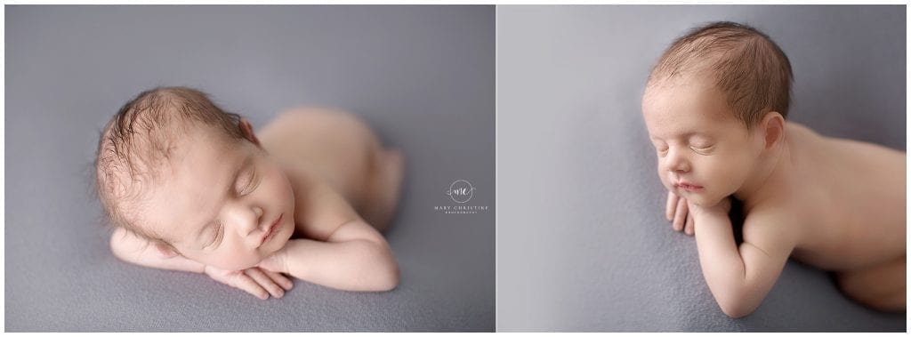This session is a good example of what to expect for a Petite newborn session. My assistant Megan and I were able to do this session in an hour and a half and he was pretty squirmy. Thanks to Megan’s hands, Baby B was kept safe and comfortable his entire session. Your little one’s safety is our top priority during your newborn baby’s photography session.