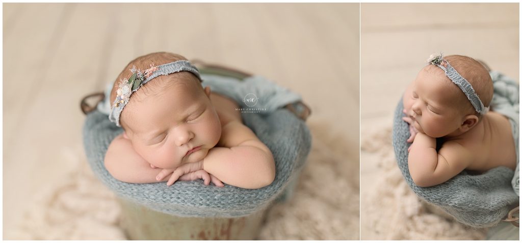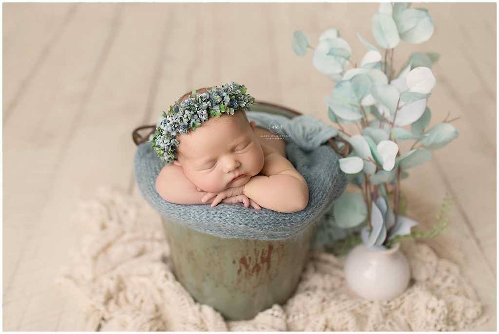 Babies in buckets will always be my favorite too! Little Miss and her cheeks have me swooning! How perfect is this halo from Lavender and Moss Props?