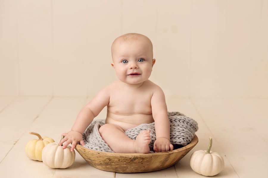 Milestone sessions are a great way to capture your baby’s personality and development! I high recommend scheduling these once your little one is sitting well on their own, as it allows for us to get a good variety safely. This usually happens somewhere around seven to eight months. If we can do the session before your little one begins crawling, that is even better!