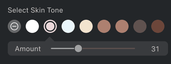 - Skin retouching (Evoto does an amazing job preserving that newborn softness). My favorite feature for newborn photo editing is the skin retouching section. Select the skin tone and lower opacity to create even creamy skin textures.