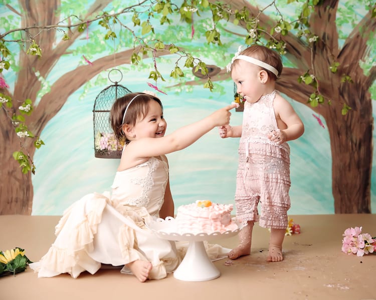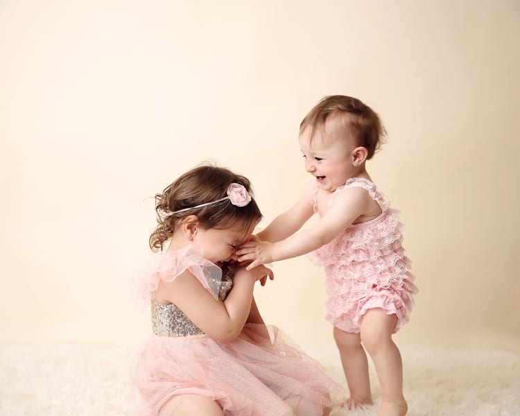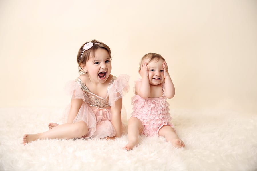 Beckett’s cake smash was a success…all she needed was some help from her big sister on how to dig in. It has been so amazing to watch these girls change and grow over the past year~ especially watching their relationship blossom. Big sister, Kamille wasn’t so sure about Beckett at her newborn session. In fact, it took quite a bit of bribing and some magic from Photoshop to get the two of them in the same frame. But now, one year later, they are best buddies. So much so, that Beckett wasn’t going to do anything without her big sister’s help. Kamille was happy to comply….although when there’s cake involved, there’s not too much arm twisting to do!