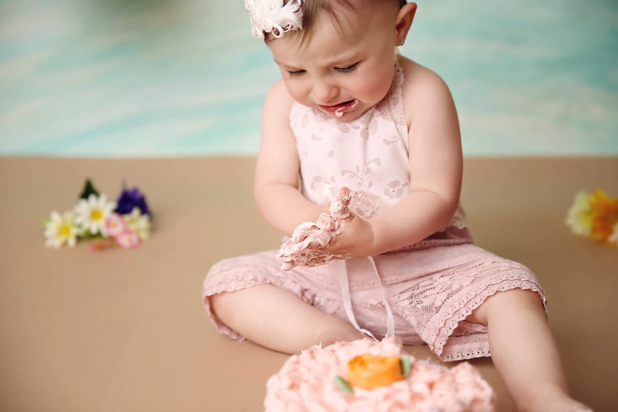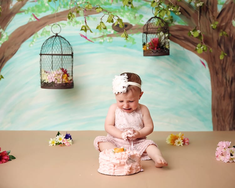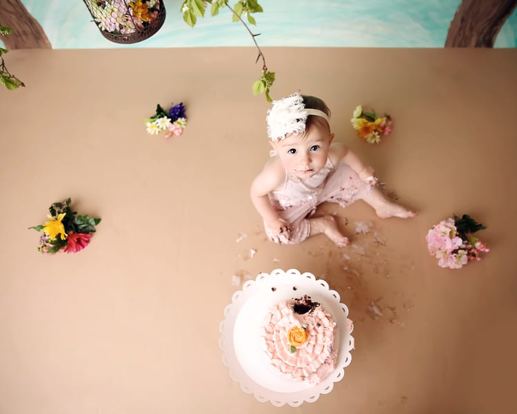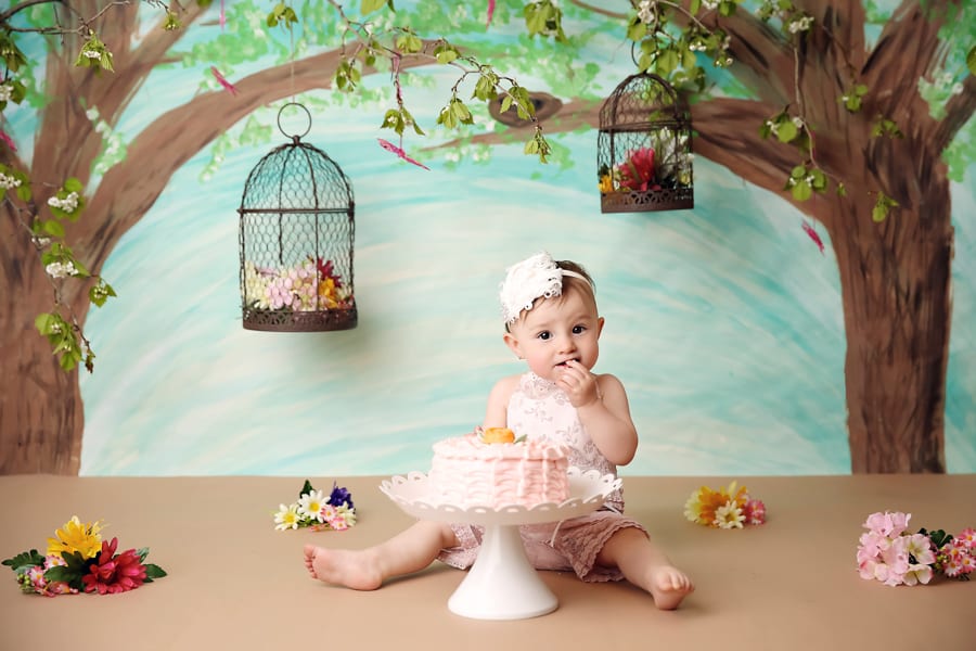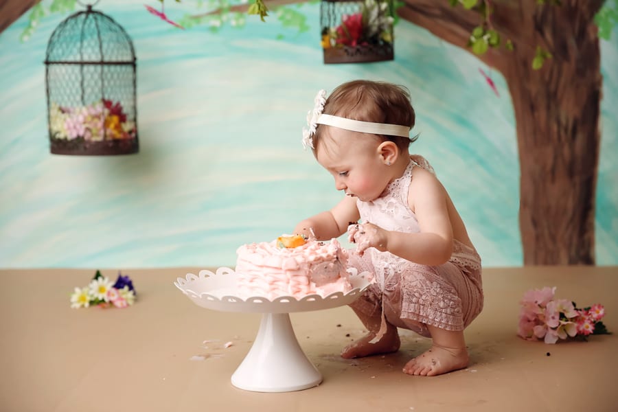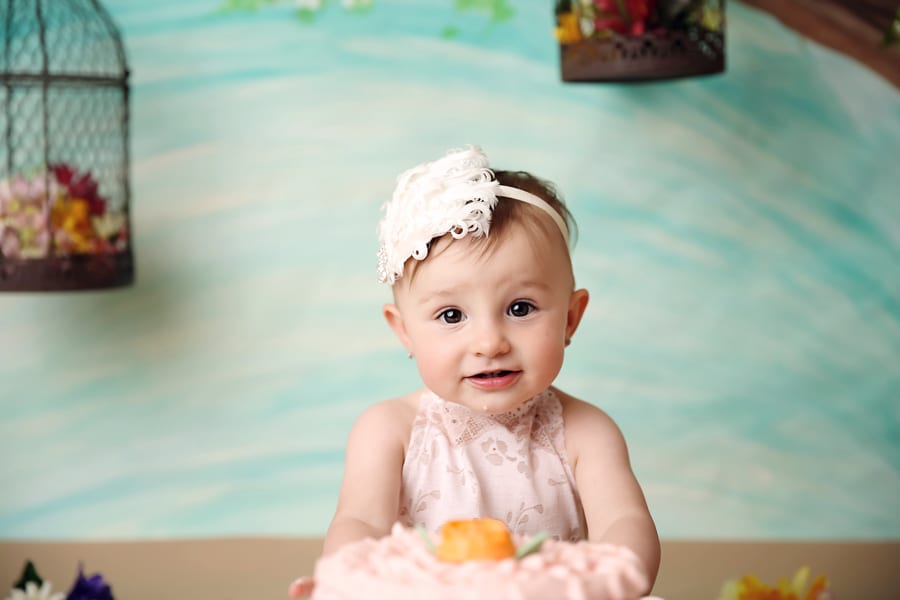 Beckett’s nursery has a bird and tree theme, so we tied that into her cake smash session. After all, it is spring and I happen to love flowers! This adorable cake is from A Cupcake A Day, in Medina Ohio.