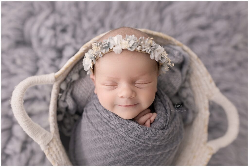 Newborn smiles can be tricky to catch. It’s actually pretty rare as a Brecksville Ohio baby photographer to catch one but Miss Megan worked her magic here to get this one!