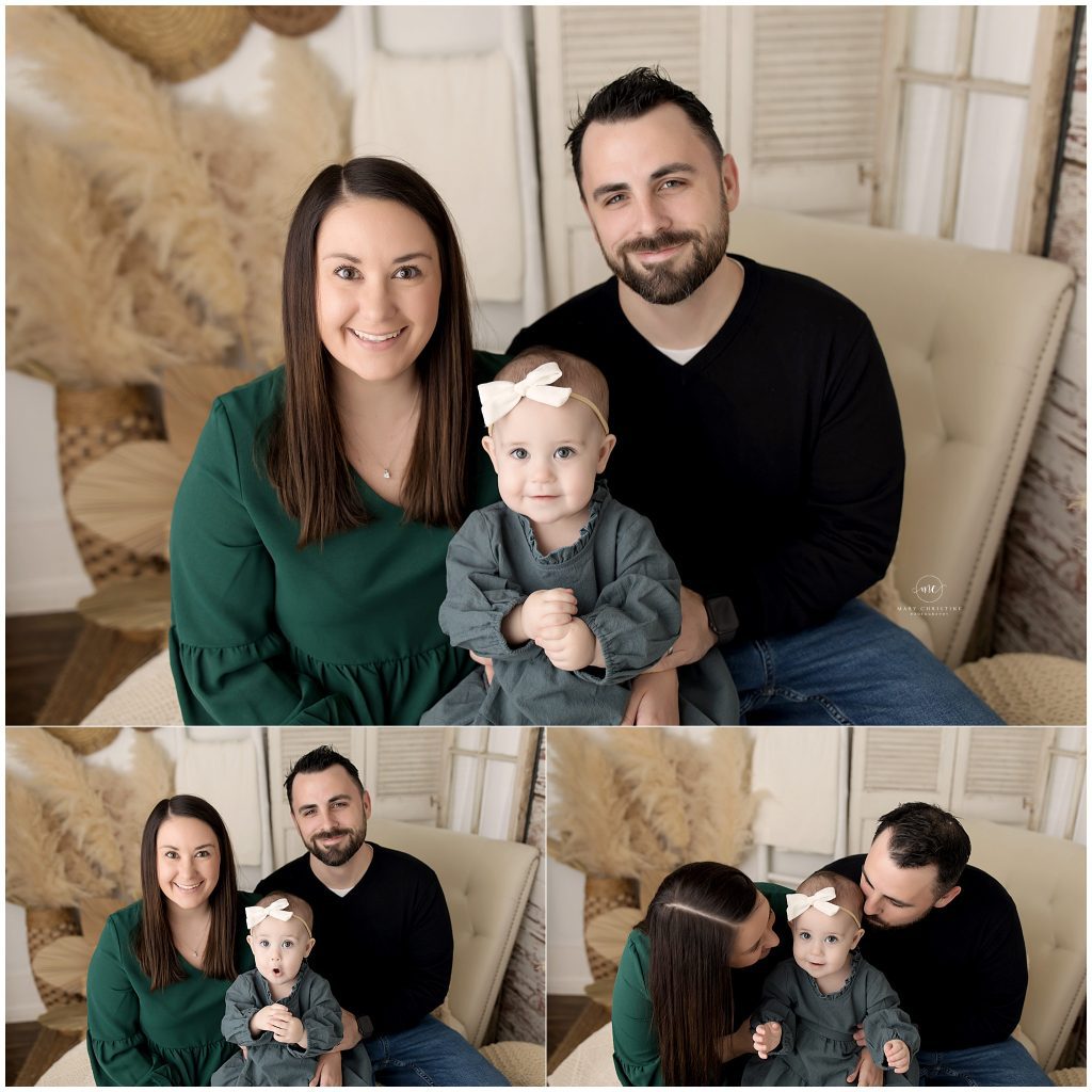 Family photos are a great way to kick off cake smash Cleveland Ohio sessions. At this age, babies typically have stranger danger. They are much happier starting on mom and dad’s lap to start. Baby girl was initially just giving me a confused stare but once she opened up, we were off to the races.