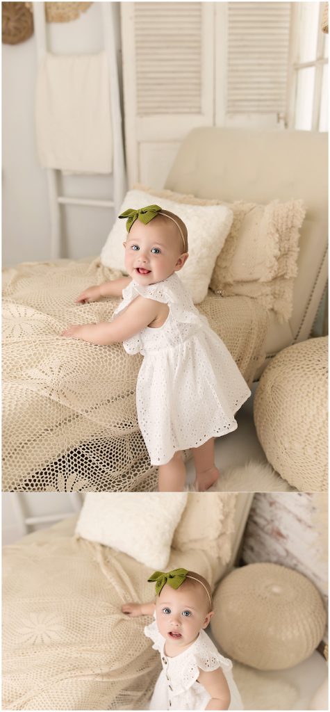 It is amazing to me how much little ones change in just a year’s time! She was so proud to be standing on her own for her first birthday session! Look at what she was like twelve months ago.