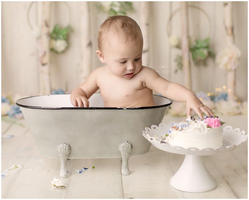 A bath after cake is always a win win. We get more photos and your little one gets cleaned up. What’s not to love?