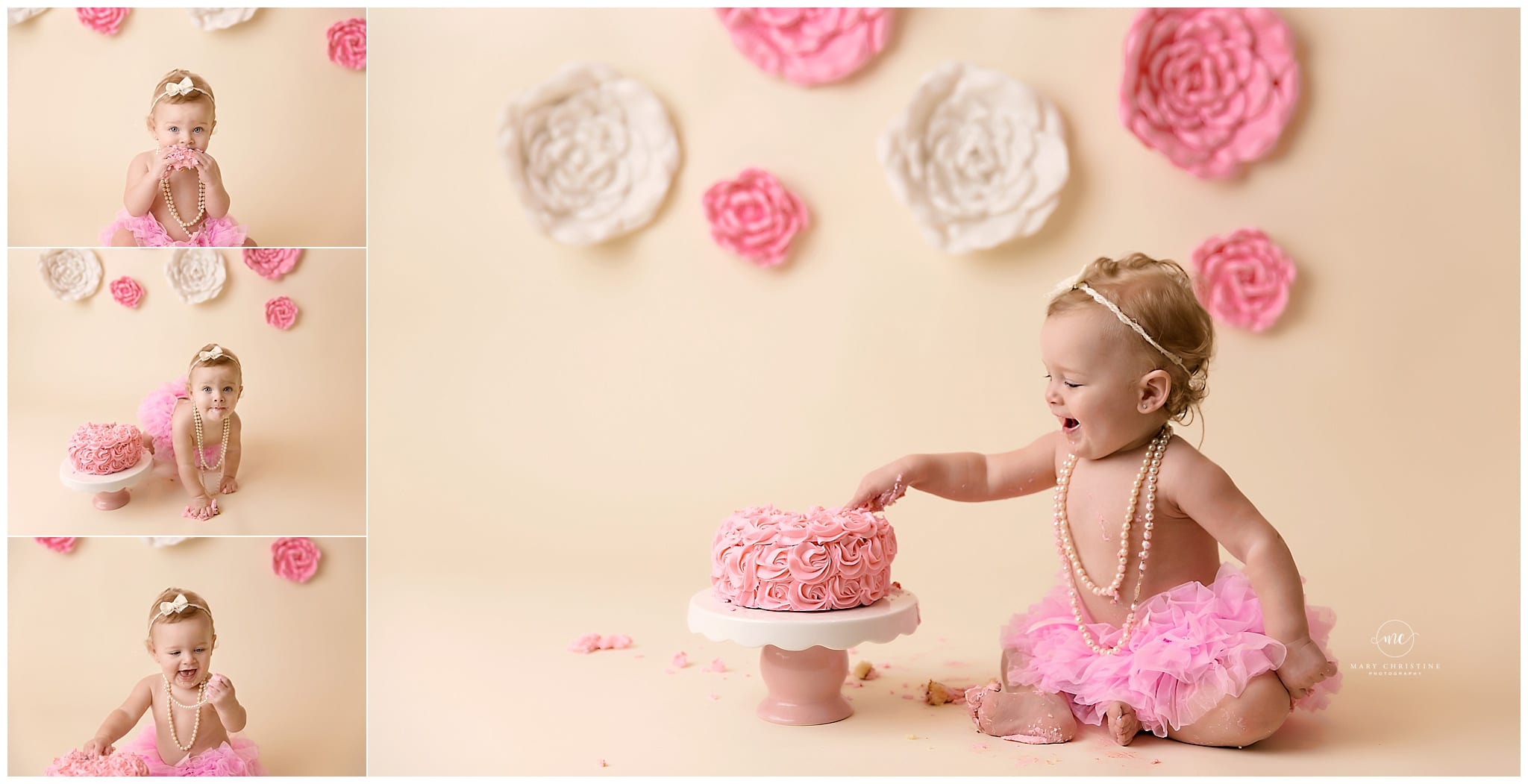 Baby P’s momma requested pearls and a pink tutu for her cake smash session. I love her reaction to her cake from A Cupcake A Day! Who does not love cake? And a whole one just to myself? Yes please! She really dug in and got a great variety of photos from this set. I love watching how babies dig in and react to the cake!