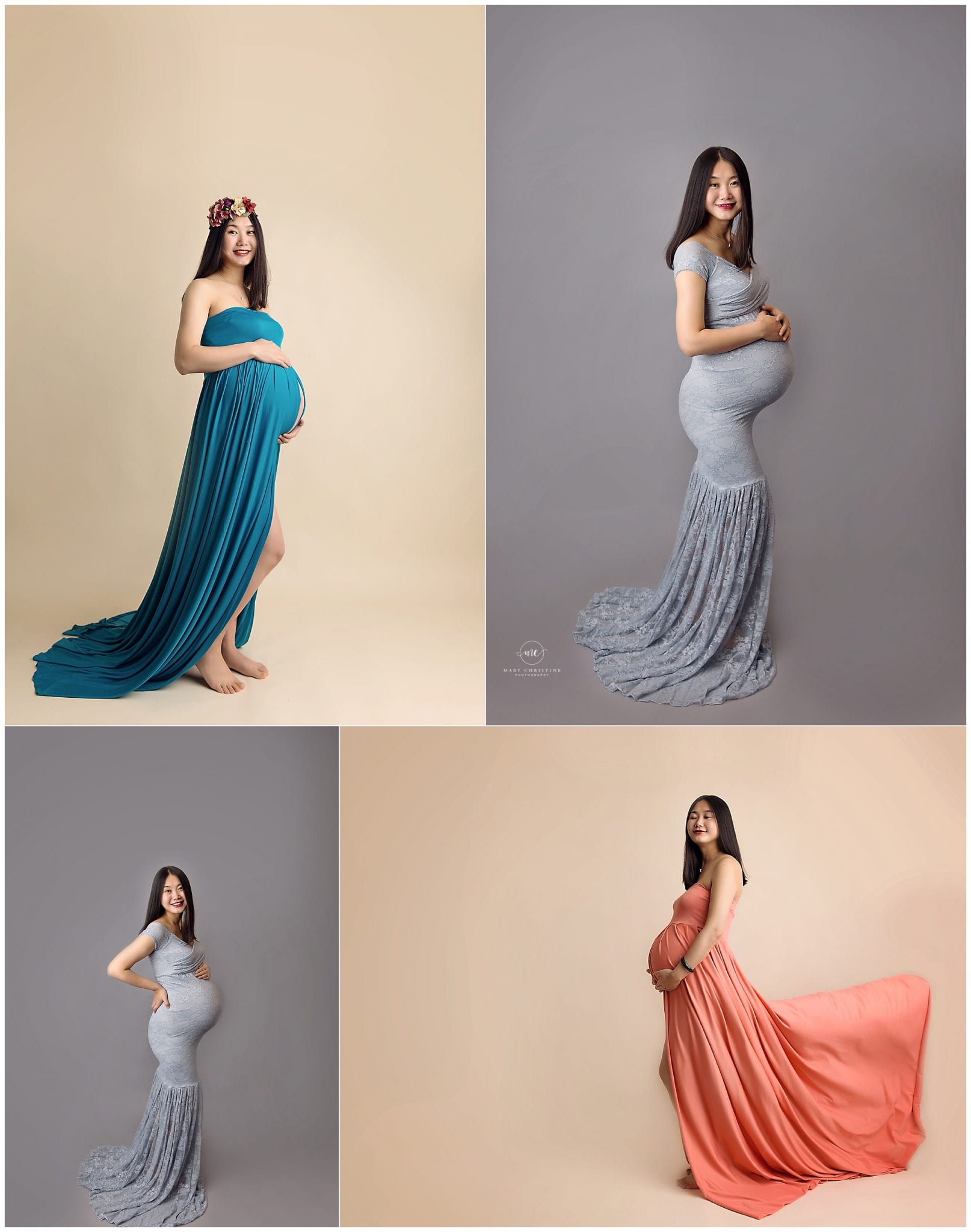 The use of maternity gowns are included with maternity sessions.  It is so fun to get dressed up and have a gorgeous way to remember this special time in your life.  There are fifteen gowns in the collection for you to choose from, as well as accessories.