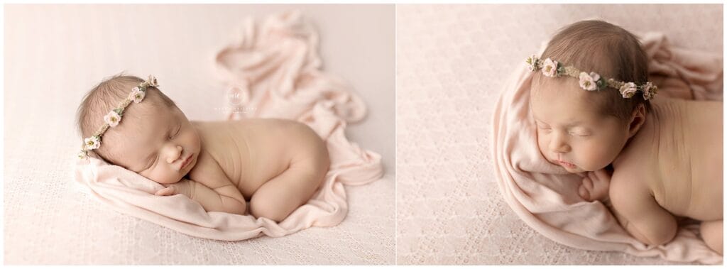 Nothing is more classic for a Cleveland newborn girl photography session than sweet and simple pink set. This halo from Baby Bliss Props has been a favorite for years.