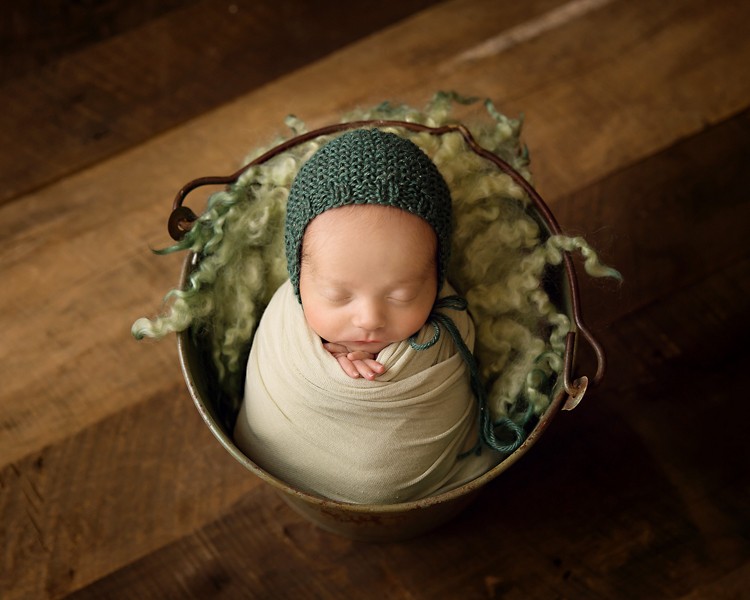 I just am absolutely loving greens lately! This bucket from Rozzie Rayn Props had just arrived and of course I had to use it for Cruz’s newborn session! And I love how cozy he looks, all swaddled. He is nice and cozy, just as his was in his momma’s womb.