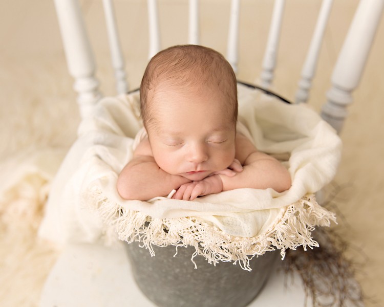 Babies in buckets never get old, do they?? I think not! This variation of layering props is totally in trend right now in the newborn photography world. It’s always fun to mix up an old favorite!