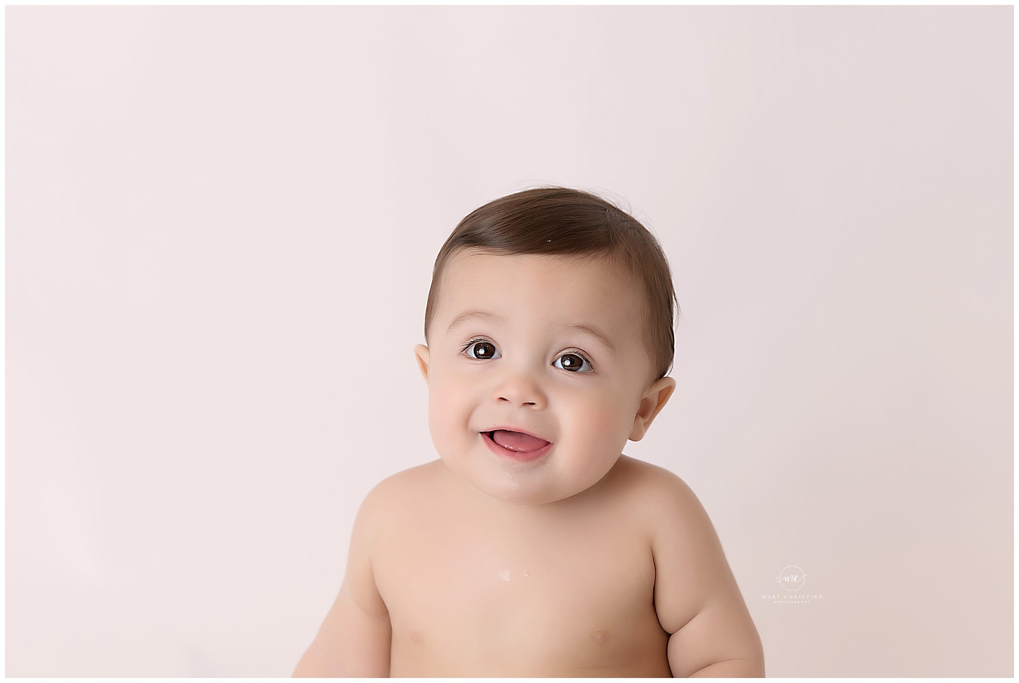 Welcome Mr. Brady’s cake smash to the first birthday photographer blog! Oh this handsome little man!  He totally stole my heart a year ago at his newborn session.  He made me fall in love with him all over again at his first birthday photos!  So happy!  And all those rolls!  So much baby goodness!