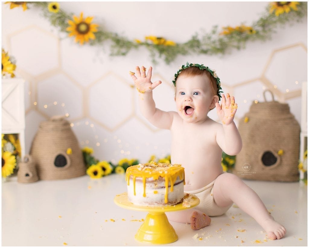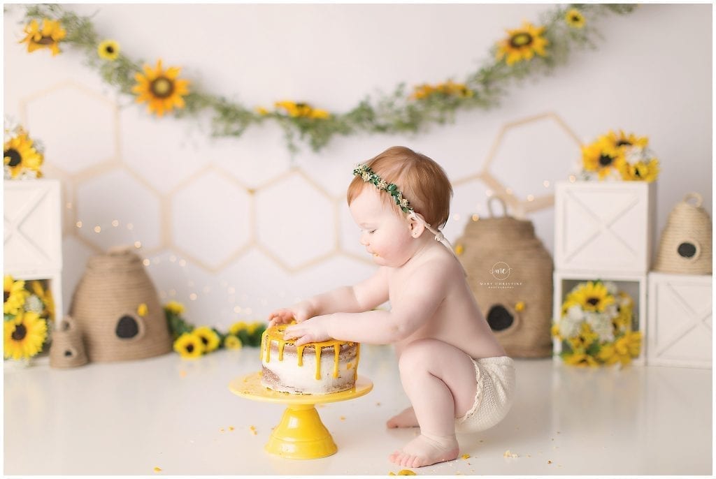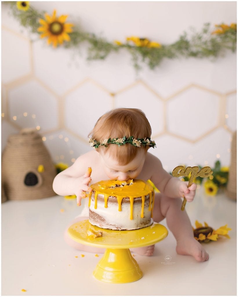 For her first birthday photos, we did a bee themed cake smash. Well, it is super fitting given her nickname. And Medina bees. Let’s just say we all need some sunshine in our lives this time of the year in Ohio and Miss B certainly did give us some sunshine. Red hair included.