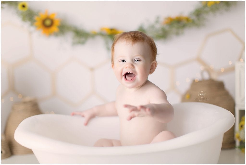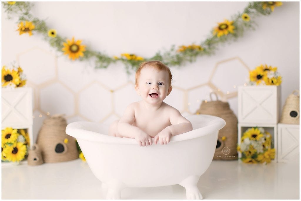 After you eat cake face first, what’s better than a bath? Miss B loved her bath time! It adds a fun touch to first birthday photos.