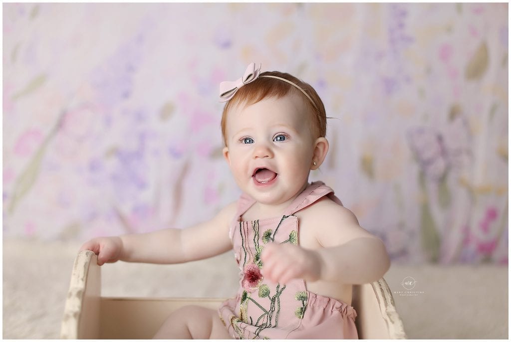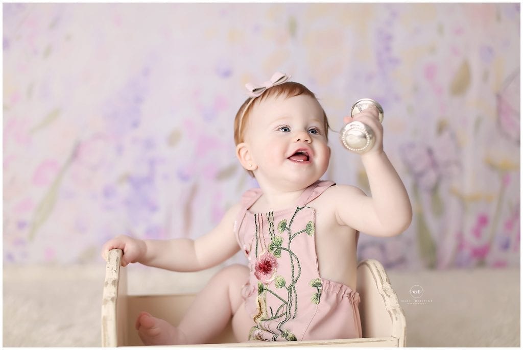 Welcome Miss B’s first birthday photos to the blog! Ah, this little love stole my heart a year ago at her newborn session. It seems like yesterday she snoozed away her session and gave me the best cuddles. Fast forward a year later and well, let’s say there was absolutely no snoozing or snuggling. We did, however, eat cake, take a bath, and chase her all of the studio. Miss B isn’t walking, she’s running y’all. Cutest little nugget I ever did chase, that’s for sure.