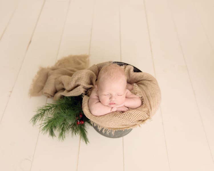 Troy is all ready for his very first Christmas! If you follow the blog, you know how much I love babies in a bucket, this version is a spin on the classic, just in time for Christmas.