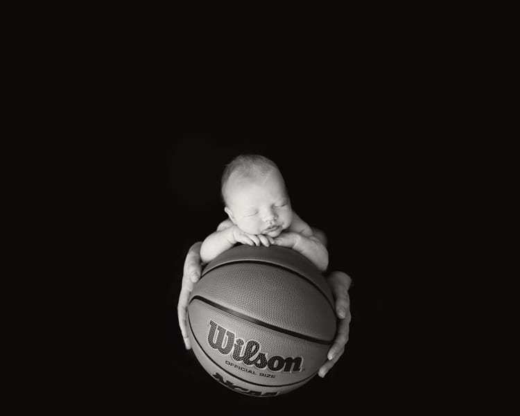 Sweet little Troy’s momma was so excited for his Newborn Photography Akron Ohio session! She has so many ideas and with such an agreeable little guy, we were able to make them come to life with a little help from Photoshop (see the image below). Just a public service announcement, babies do not balance on basketballs by themselves. This is what we call a composite, or two or more images put together to make the final image. Troy’s daddy was supporting his head the entire time. I do love how the final image came out, especially how his momma’s hands put his size in perspective. They really are little for just a blink of an eye!