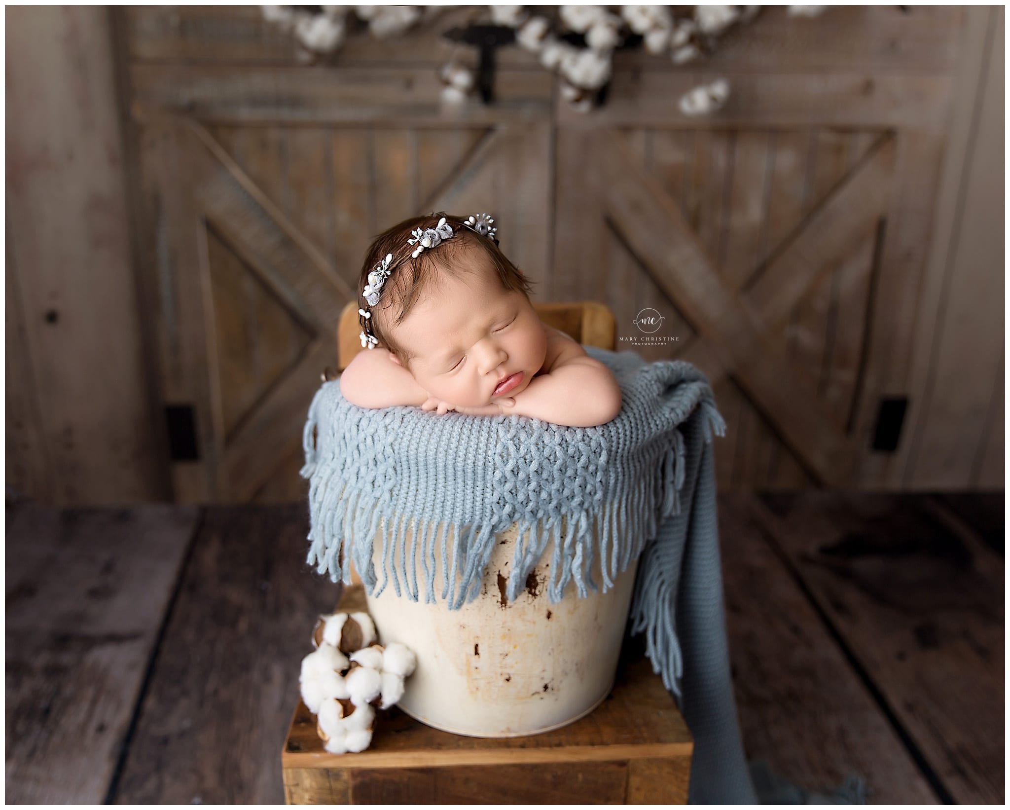 This new set is my favorite! I love everything farmhouse (if you have been to our studio, you definitely know that!) and this set it the perfect style! Barn doors, cotton, blue, and a sweet baby girl in a bucket sends me to heaven! Chip and Joanna would be so proud! This halo by Created By Carli was the perfect finishing touch for this farmhouse style set! Excuse me while I go frame this one for the studio.