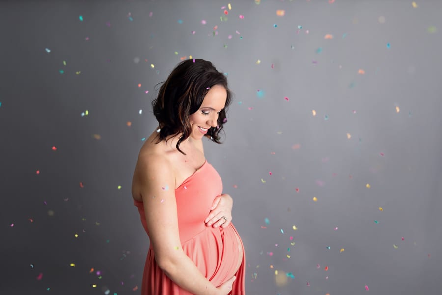 How about a little fun with confetti? This momma was such a great sport letting me throw this at her several times, especially after having her hair and make up done! And let me tell you, throwing confetti while standing on a chair and shooting is quite the balancing act. Luckily there was no damage done and the result is gorgeous! Studio sessions do not have to be boring!