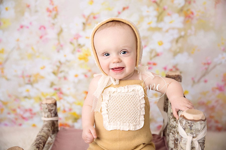 Maisie’s garden tea party was a smashing success! Oh goodness, it had been a whole year since I saw Maisie for her newborn session~ it’s always so amazing to see how these babies have grown and changed into little people! The morning of her session we had several inches of snow but that didn’t stop spring and flowers in the studio. Crazy Ohio weather!