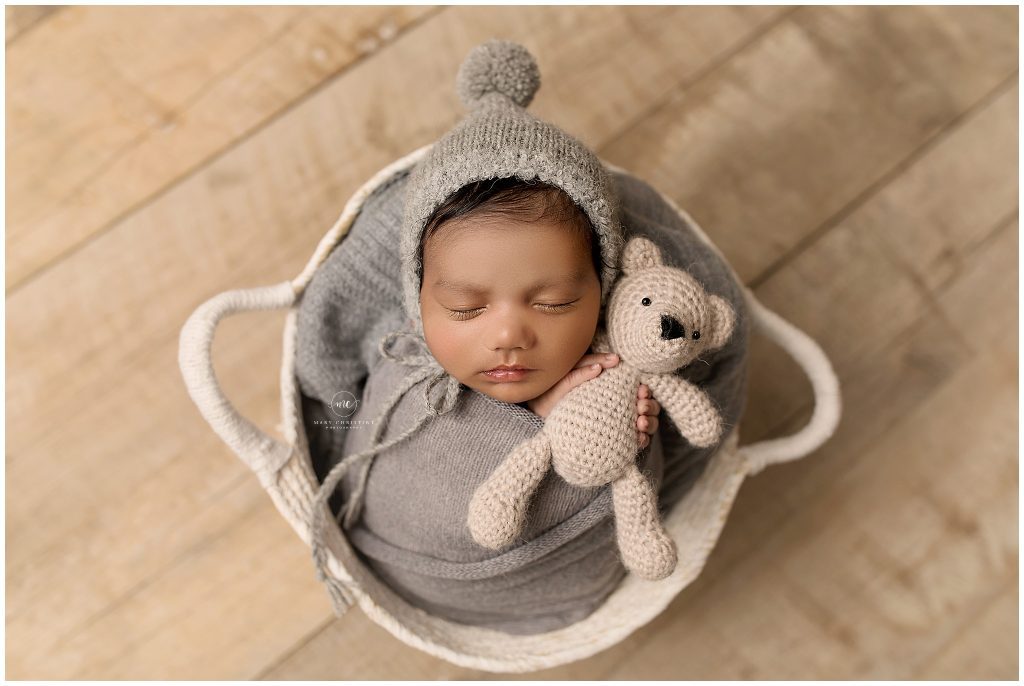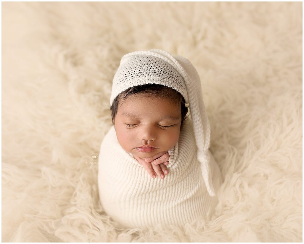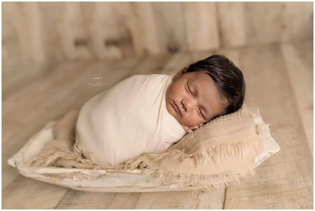 His photoshoot was a Simply Swaddled session. For these type of sessions, we keep the baby wrapped. This keeps your little one comfortable and content. It is also great for babies that are a bit outside the two week newborn range. You can still get some great variety from these sessions though!