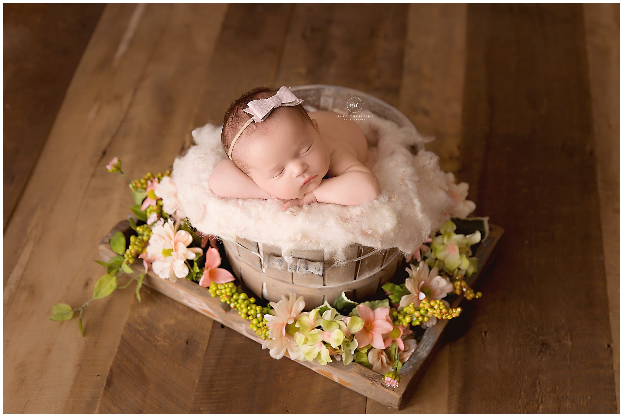If you follow this blog or maybe one of my social media accounts, you know how much I love a good baby in a bucket set. And you know how much I love florals. It’s not a newborn photo until you have both in my opinion! So in love with the soft colors, textures, and Olivia’s sweet little face!