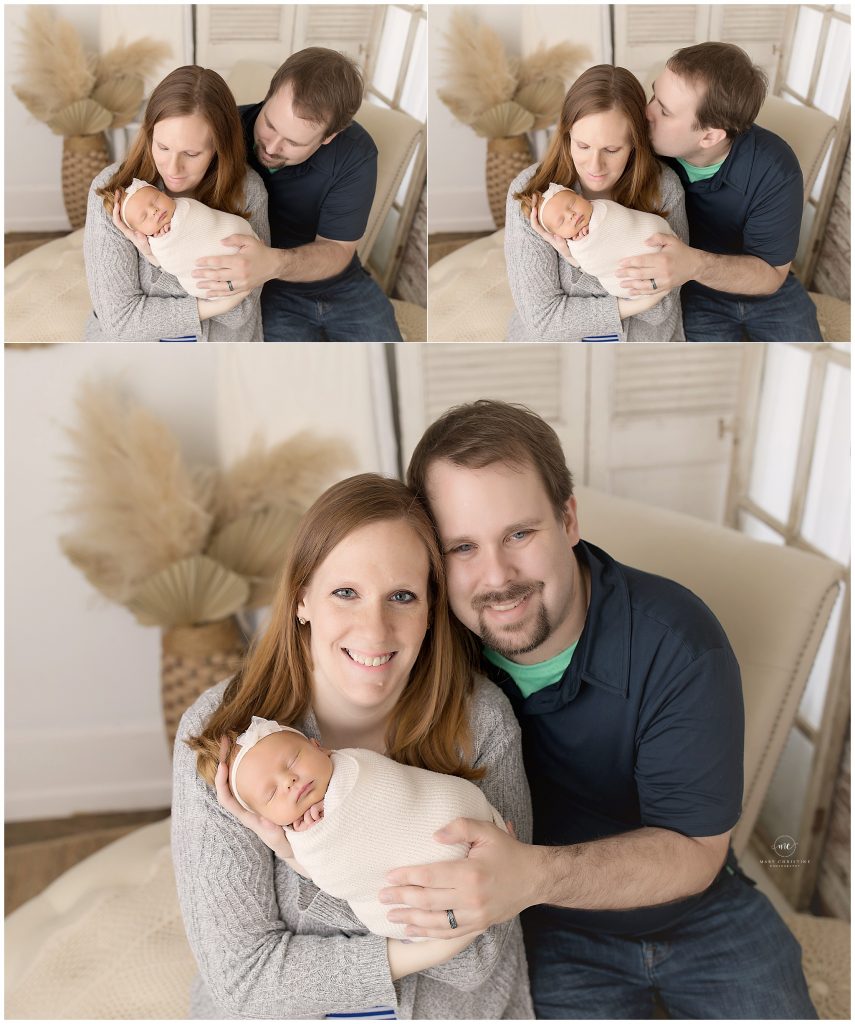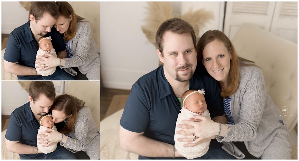 Family photos are such an important part of newborn portrait photography sessions. After all, it is a once in a lifetime that you become a parent. There’s nothing more precious than a new mom or dad with their baby in their arms. Baby girl will love having these photos too when she’s older.