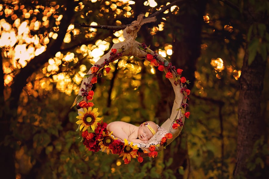Well, it appears that fall has finally arrived this year and after having so many requests for the purple wreath that I made last year, it was time to make a fall version! Don’t worry friends, this babe was nice and safe, no dangling babies in danger here! This is a composite, meaning two photos put together in Photoshop.