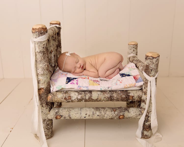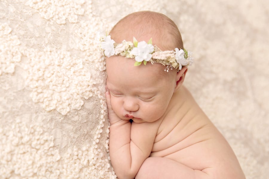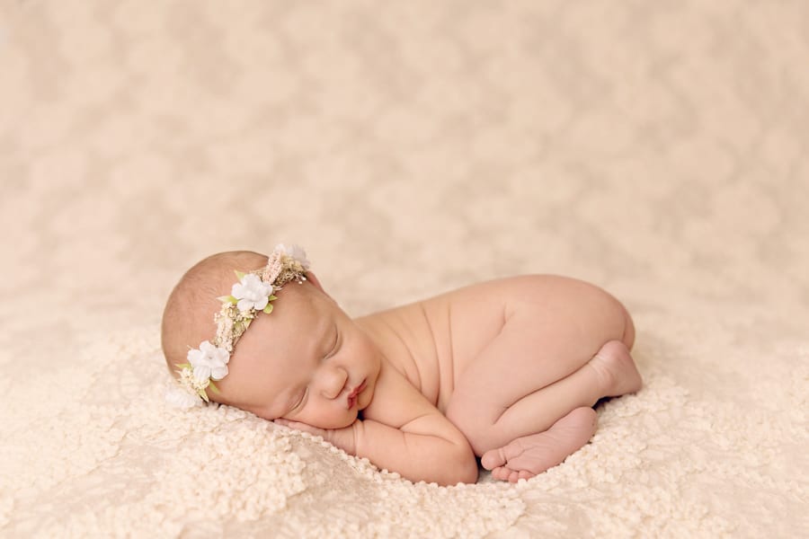 This lace backdrop from Roses and Ruffles is hands down my favorite drop for little girls~ especially the neutral color, it’s so timeless and gorgeous! Add in this halo from Baby Bliss Props and my favorite pose and I’m in love! Oh those little rolls, and feet!
