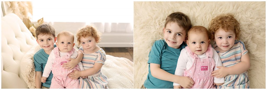 We had to do a little recreation for her newborn session. I cannot believe all three of them held so still! Most babies at this age despise being on their backs like this. Isn’t it amazing how much kiddos grow and change in one year??