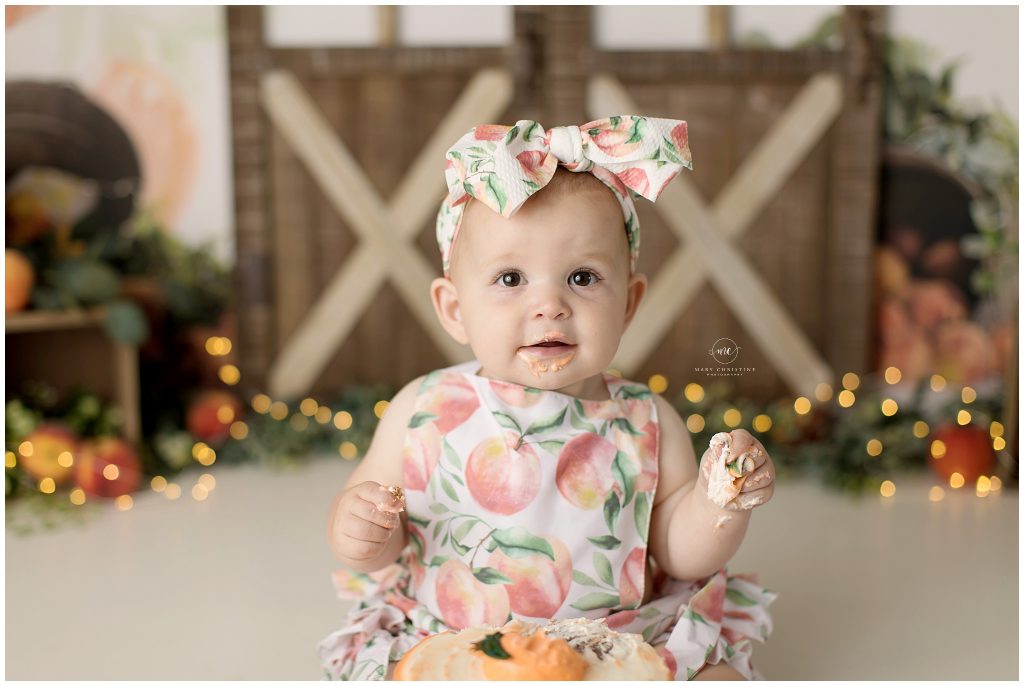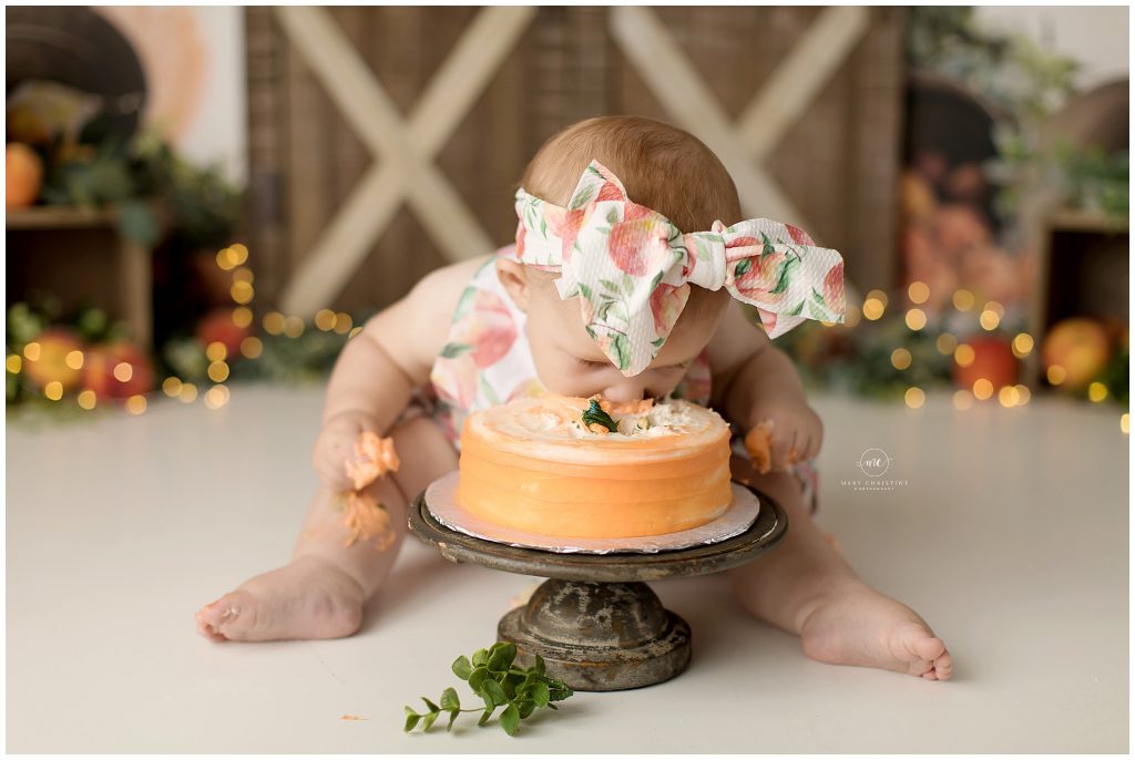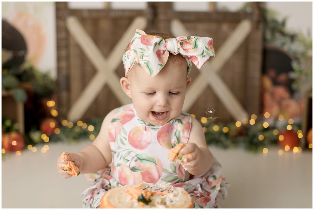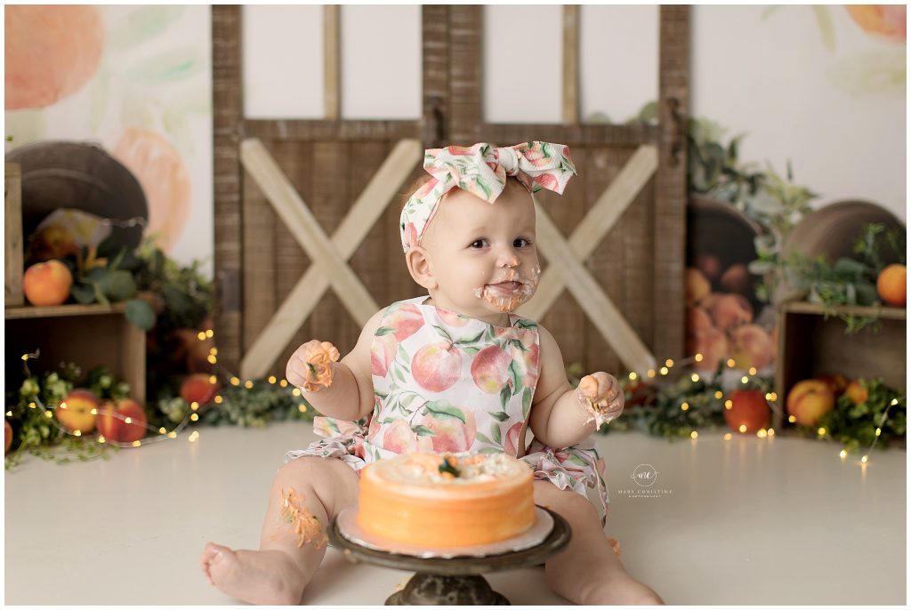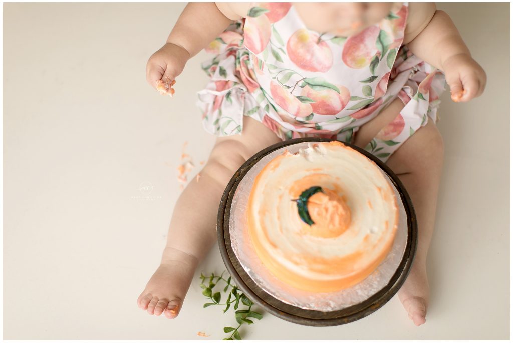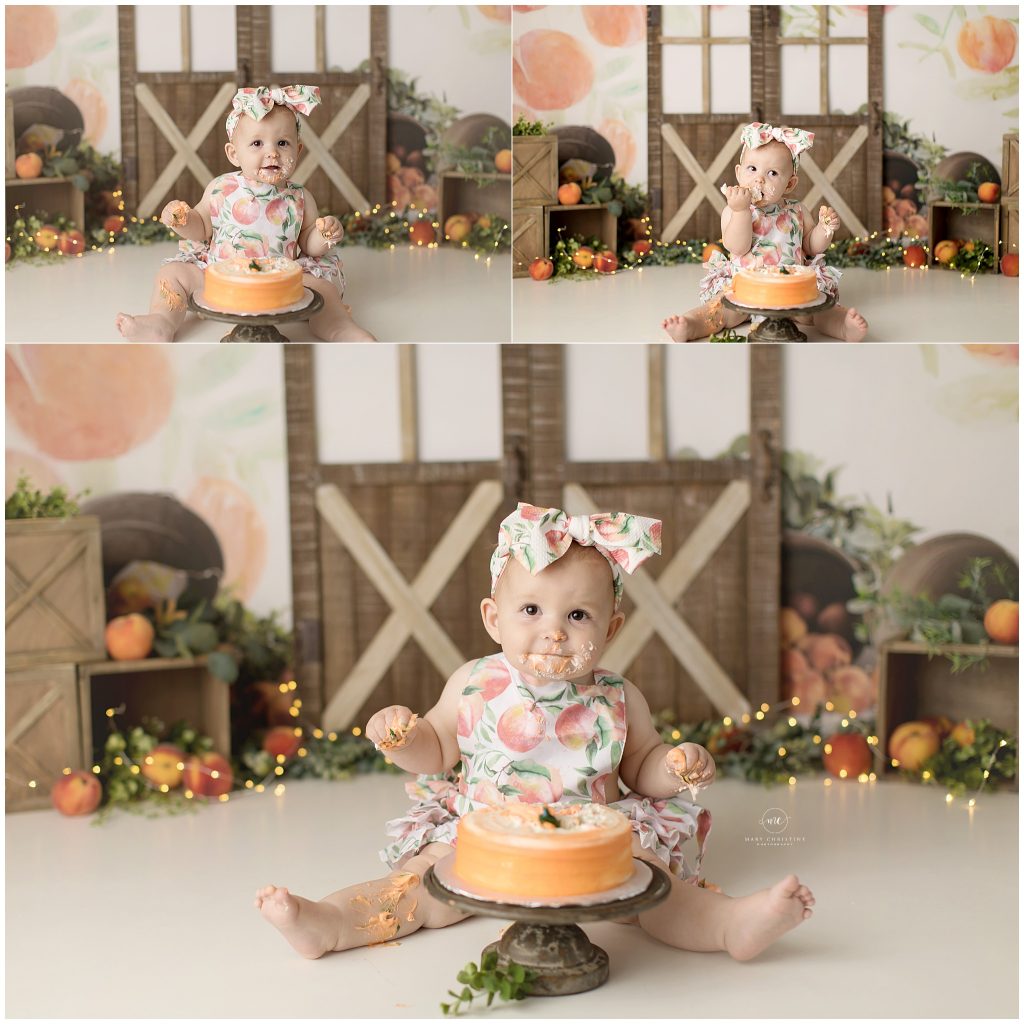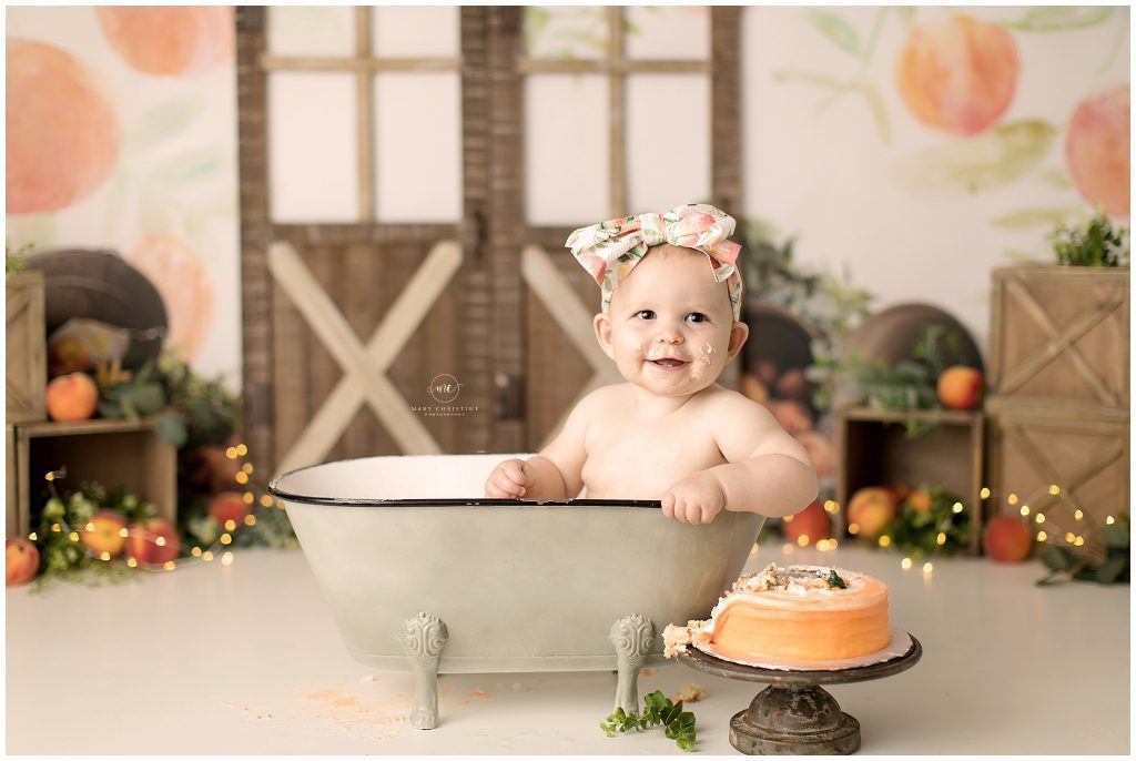 What’s better than a One Sweet Peach cake smash? How about a bath with cake? Baby girl loved her cake and her bath!