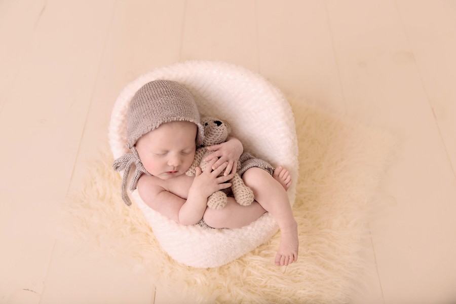 The potato sack pose is always a go to for me, especially with alert babies like Quinn.  It keeps them nice and cozy while we get a variety of sets.  Keeping the little ones happy is my top priority- a happy baby makes for a great gallery of photos (not to mention helps mommas relax).