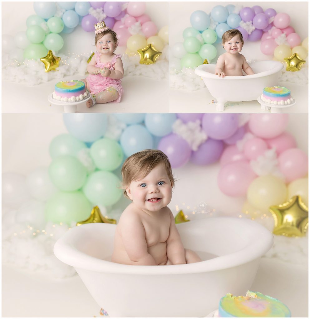 And of course since she was so happy, we fit in a few more sets. Goodness, gracious, she’s like a professional baby model! It is like she practiced for her rainbow cake smash ahead of time!