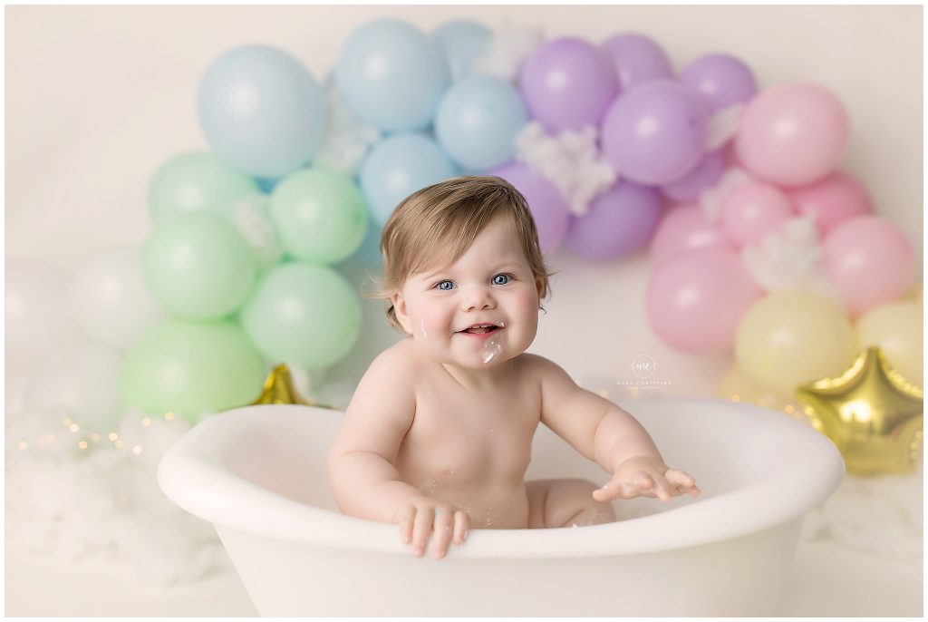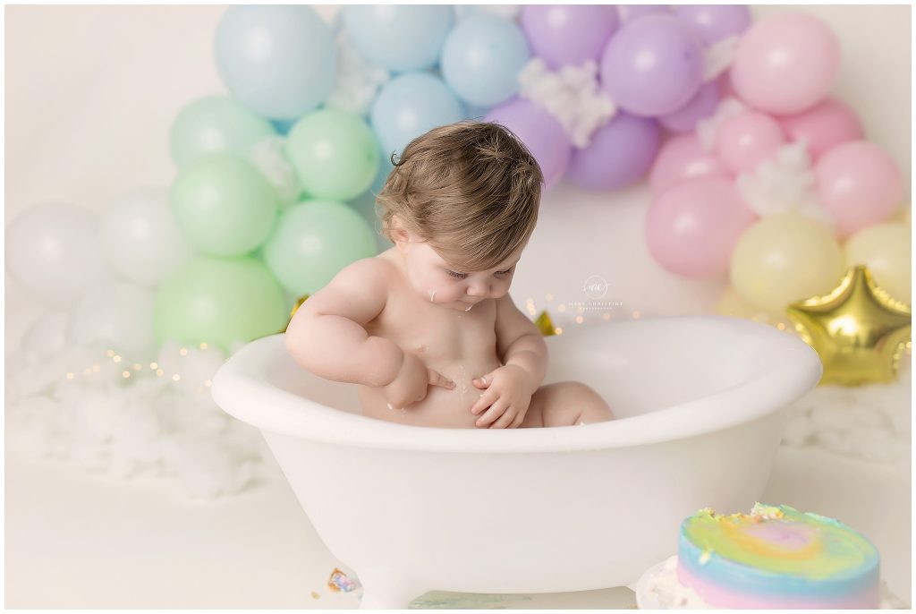 What better way to clean up from some cake than a bath? Oh those baby rolls don’t last nearly long enough! Isn’t she divine??