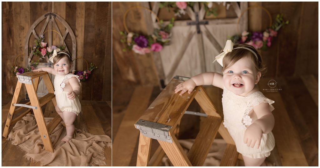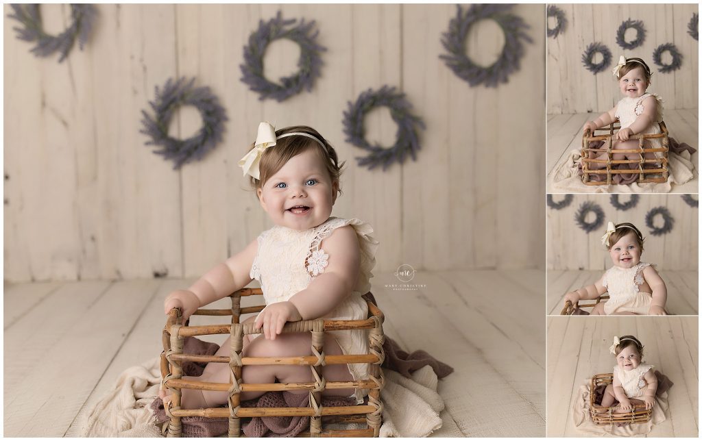 We always do a few non birthday sets during a cake smash session. Little Miss was all smiles for me! It is so nice to see, especially since stranger danger is a real thing around the first birthday. My goodness, I could just gobble her up! So sweet!