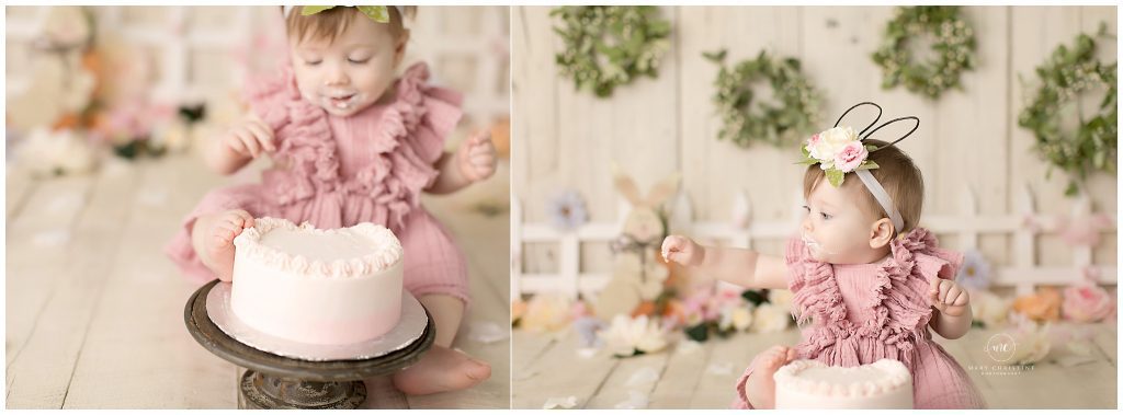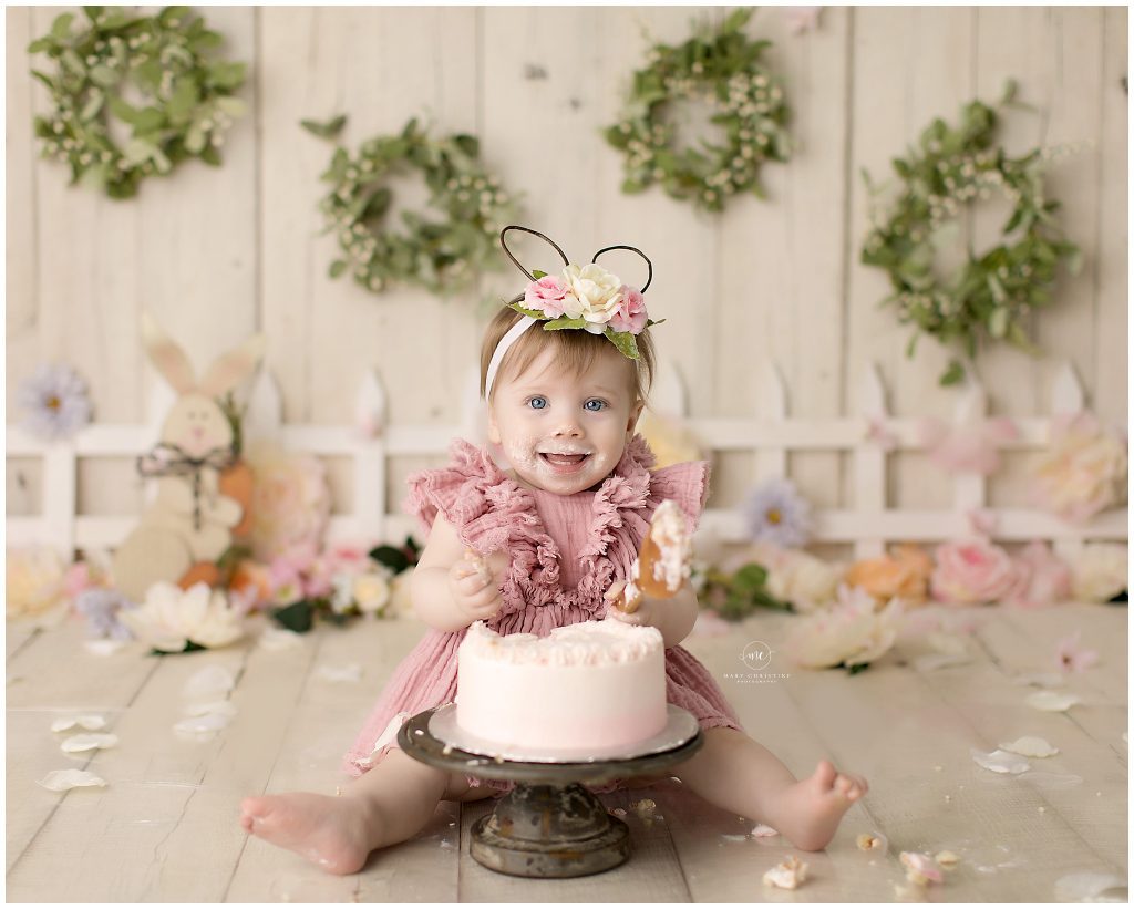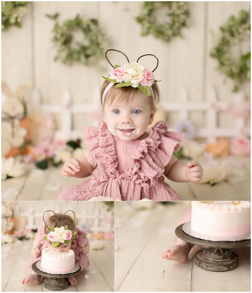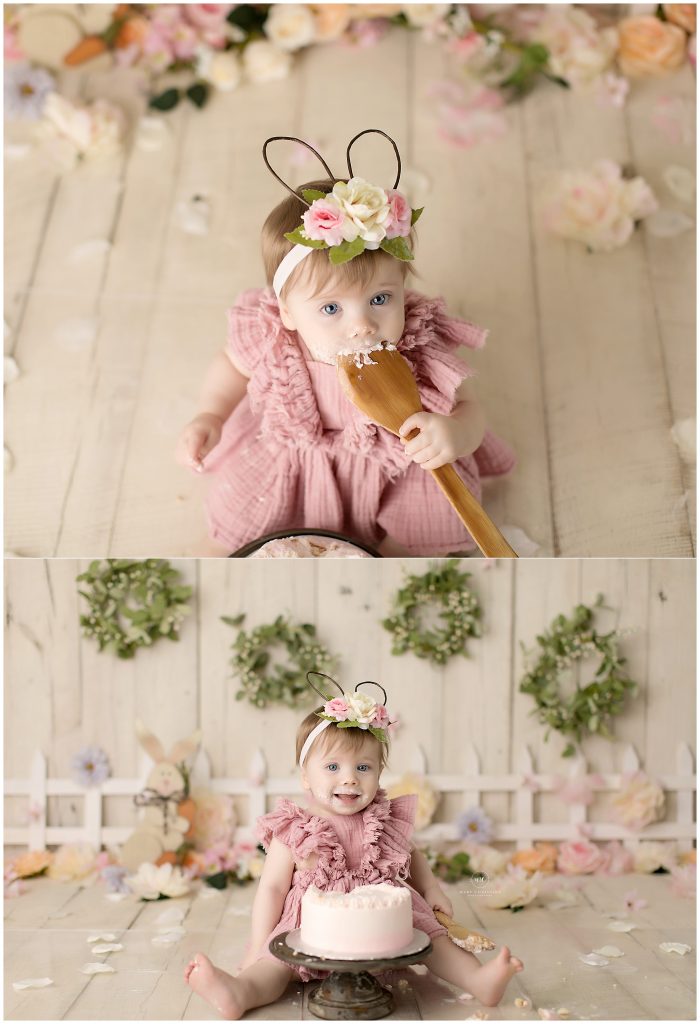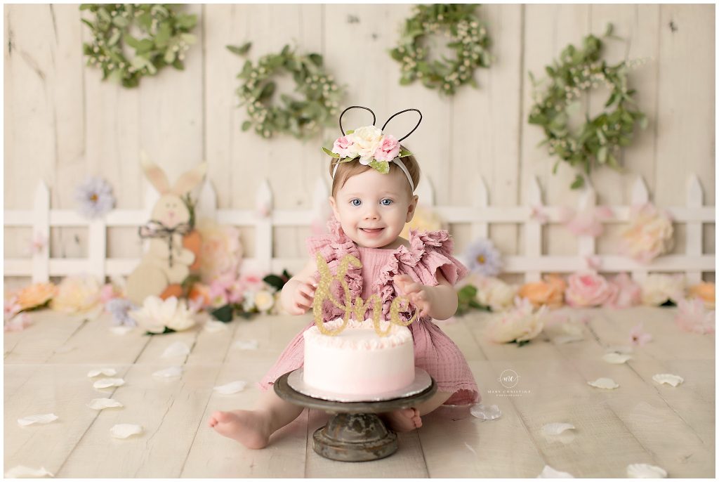Baby girl’s first birthday theme is perfect for a spring birthday. This some bunny is one cake smash set was SO much fun to put together! Only a few more days until Easter and this set really helped get us in the spirit.