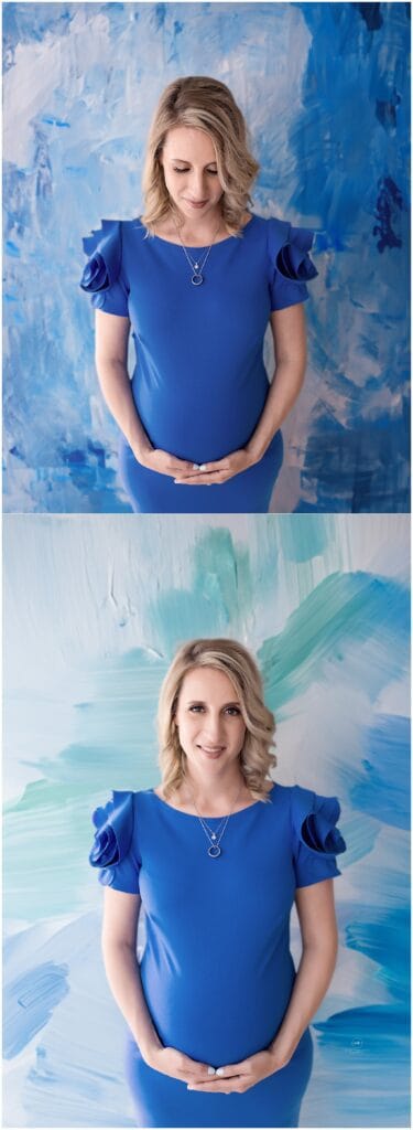 Momma had her hair and makeup done in studio by the amazing Nichole Lang. I highly recommend getting your hair and makeup professionally done before your studio pregnancy photoshoot. Not only does it make a relaxing experience, but Nichole will make you feel your best.