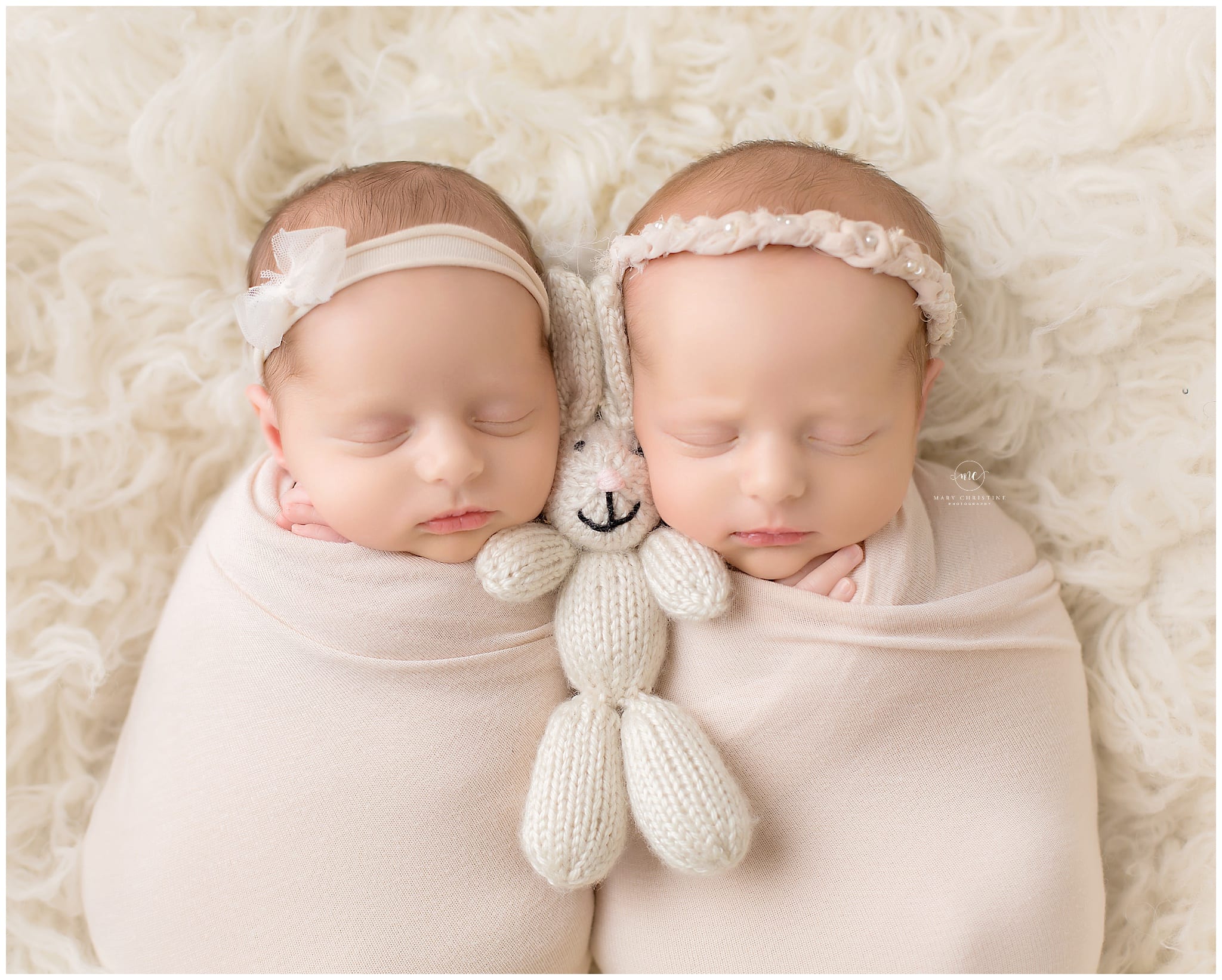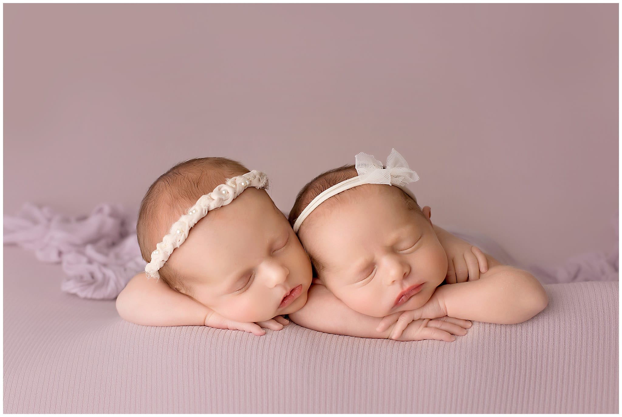 Today on the blog we are seeing double!  Welcome, Juliette and Isabella’s twin newborn photography session!  My goodness, these girls were such amazing little peanuts!  Weighing in at just under six pounds each at birth, they were so dainty and sleepy!  Talk about a newborn photographer’s dream!