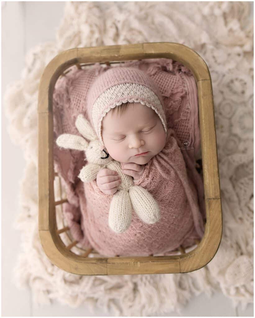 Oh this sweet bunny gets a lot of love in the Wadsworth Ohio newborn photographer studio! Doesn’t she look like a little doll baby??