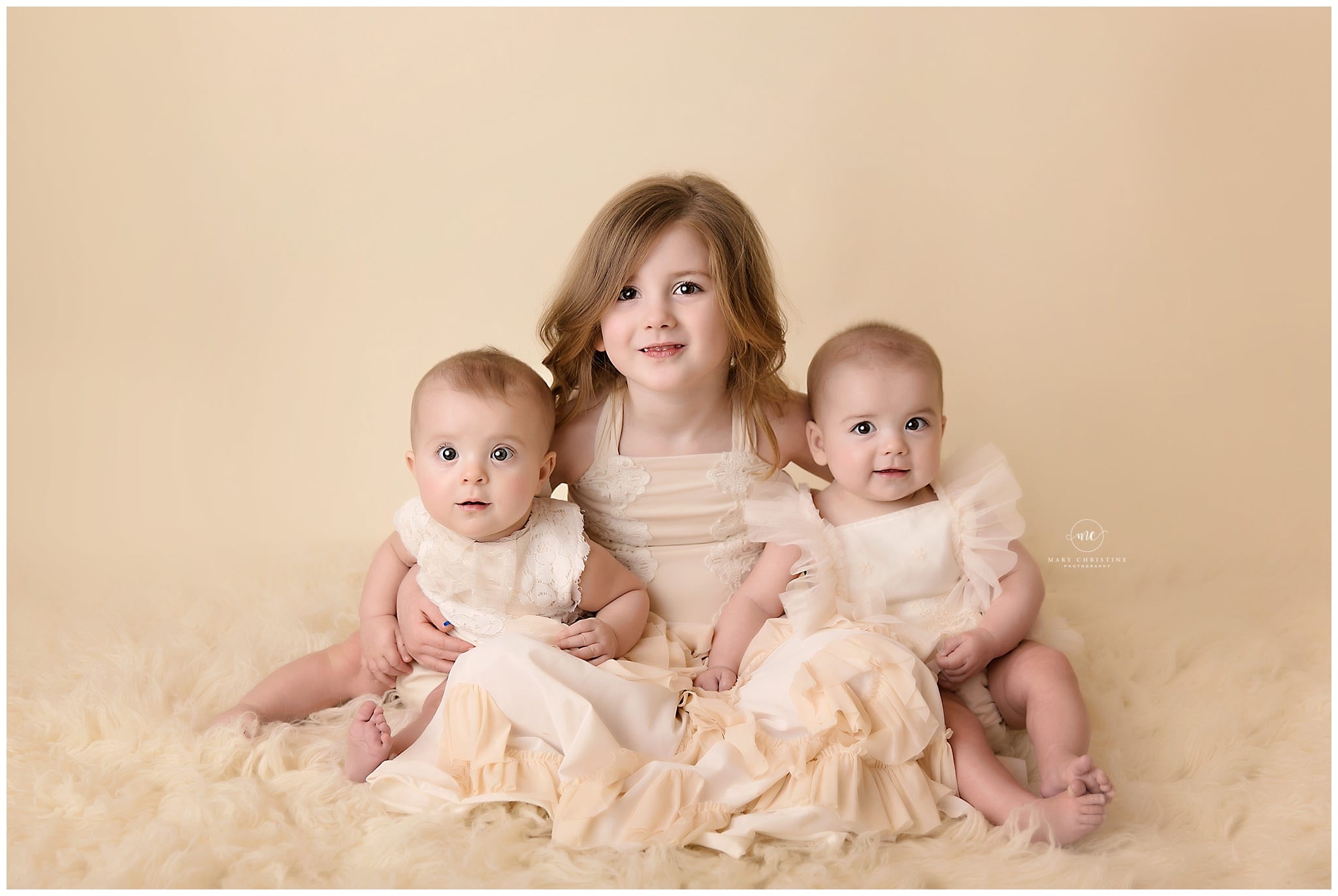 Big sister’s dress is from Dollcake and the girls rompers are from Baby Bliss Props and Cora and Violet. I think it really puts the polished touch on the portrait of having nice, coordinated clothing.