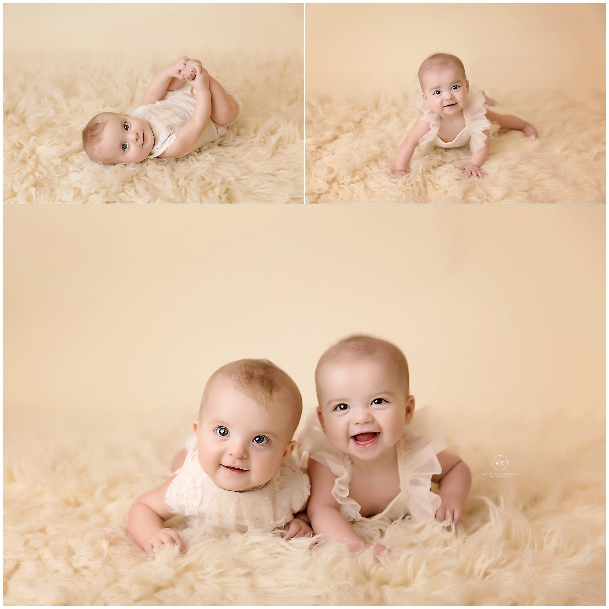 The twins are about six months old and while I was scheduled to do their newborn session, they had a bit of a rough start. We decided to wait until everyone was doing well, so when they came in, I was thrilled to meet them! It was so difficult to know that one of the girls had an extended hospital stay. I cannot imagine as a momma having a child in the hospital that long!