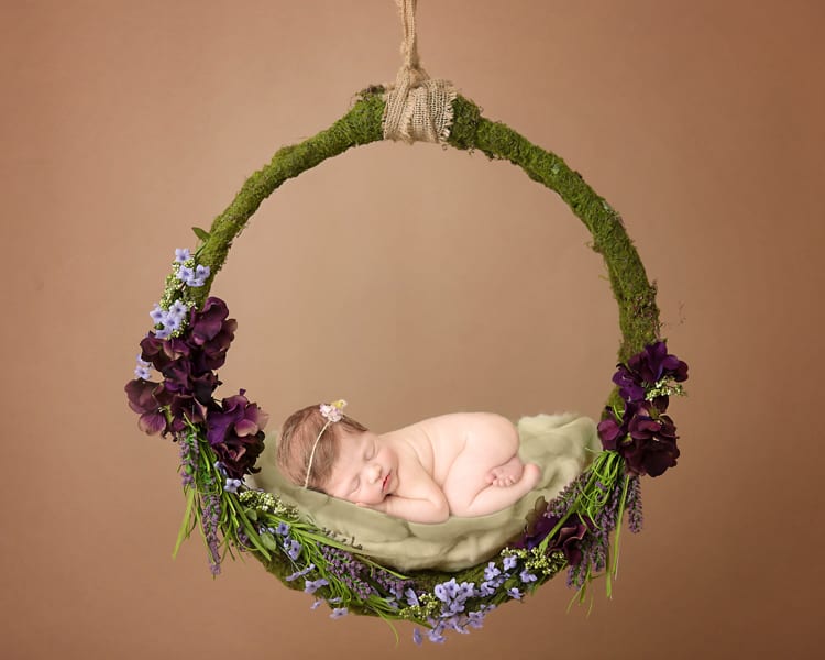 While I can pose them on the wreath, it’s a bit tippy since it’s round and I would need to do a composite anyway since we would never hang on baby on it off the ground. To see how this photo was made, visit my Facebook page to view the video.