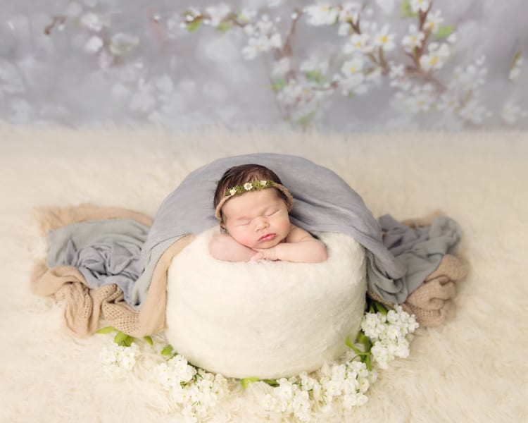 Olivia’s momma requested white, pink, and grey for her colors. She loves everything girlie so hopefully we nailed that with her session! This background from Intuition Backgrounds and tieback by Created by Carli fit the bill perfectly for her session! And this nest by Handmade by LuLu is always a favorite.