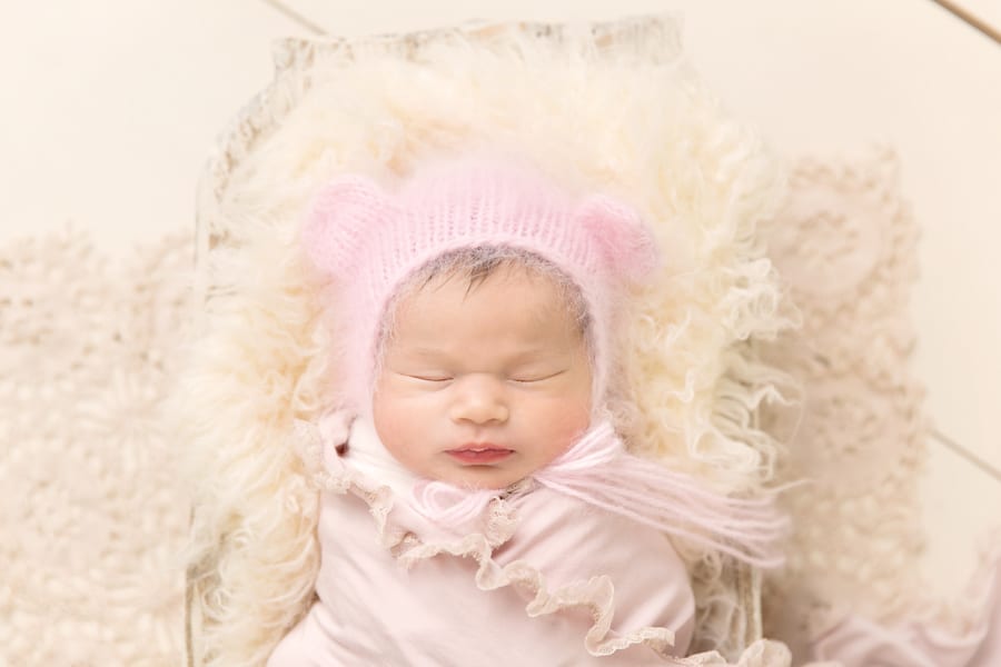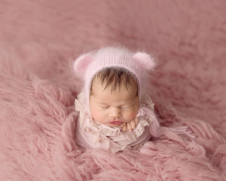 Why yes, I am obsessed with soft pinks, ruffles, bear hats, and the potato sack pose!! <3 This pink wrap is by far my favorite…it’s made several appearances on my Facebook page and blog. Nothing by love for this wrap and little one!